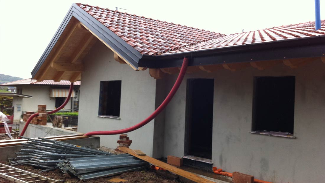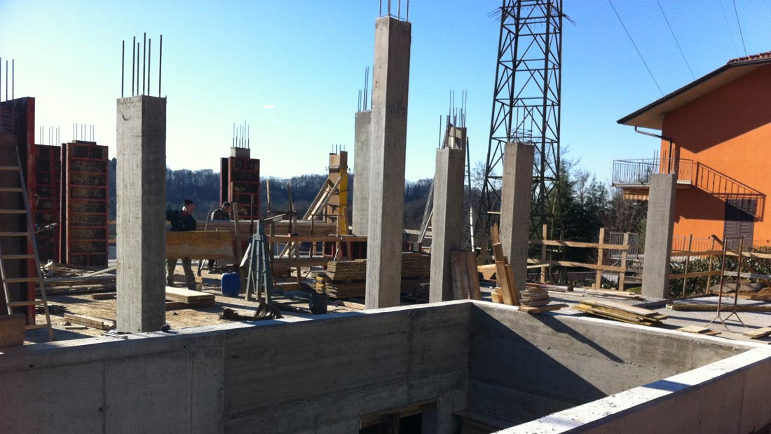 Costruzione di nuova villetta unifamiliare in classe A con struttura trave e pilastri e tamponamenti in laterizio.