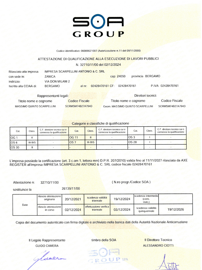 L’azienda opera nel settore pubblico dal 2001 ed è attestata SOA nelle categorie OG1 OG3 consentendo all’impresa edile di operare nel pieno rispetto delle normative in materia di prevenzione e sicurezza nei cantieri e di portare a termine i lavori nei tempi stabiliti.